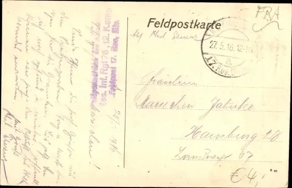 Zustand, siehe Scan, gelaufen, 1916 - ca 14 cm X 9 cm