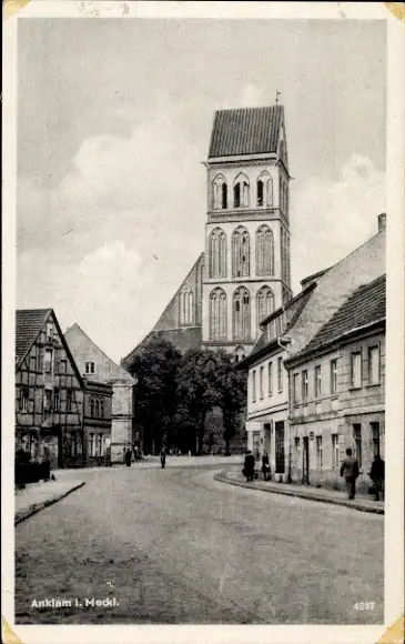 Ak Anklam in Mecklenburg Vorpommern, Straßenpartie, Kirche