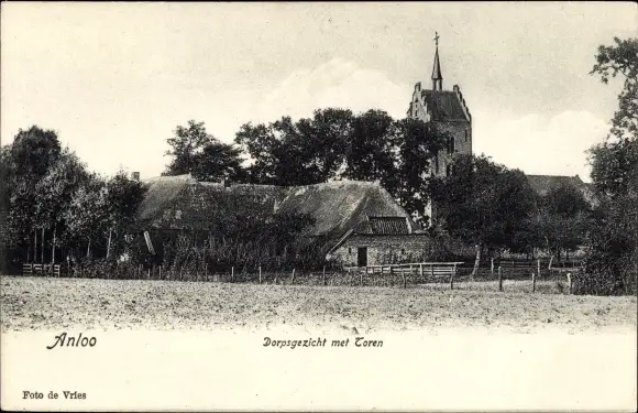 Ak Anloo Drenthe, Dorpsgezicht met Toren
