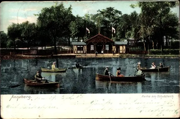 Ak Annaberg Buchholz Erzgebirge, Partie am Schutzteich, Ruderboote