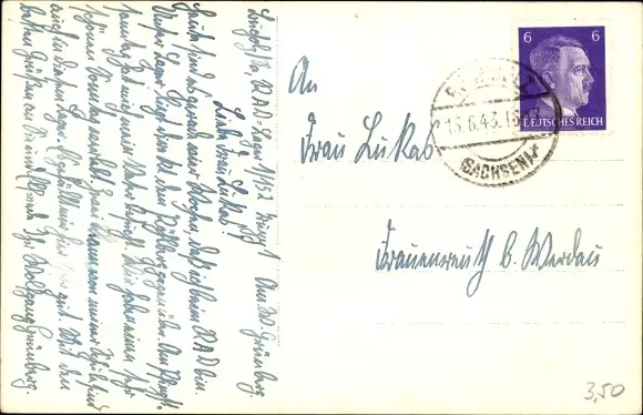 Zustand, siehe Scan, gelaufen, 1943 - ca 14 cm X 9 cm