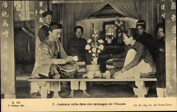 Ak Annam Vietnam, Interieur riche dans une campagne, reiche Vietnamesen beim Teetrinken