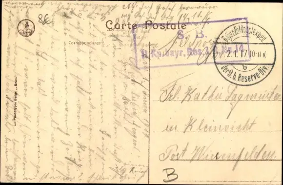 Zustand, siehe Scan, gelaufen, 1917 - ca 14 cm X 9 cm