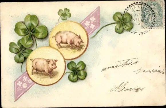Ak Ansicht von Schweinen und Kleeblättern, Kitsch
