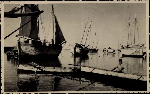 Ansichtskarte, Postkarte, Hafen, Schiffe, Boote, Dampfer, Boot