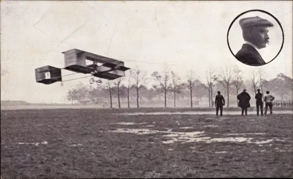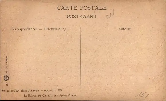 Ak Antwerp Aviation Week, Okt.-Nov. 1909, Baron de Caters, Doppeldecker