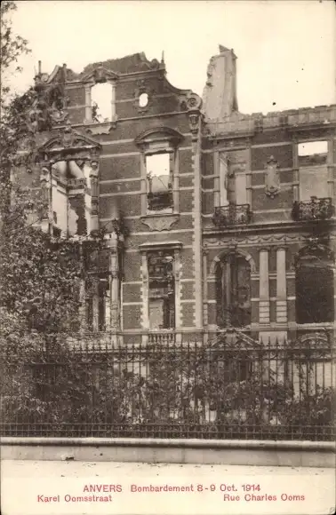 Ak Antwerpen Antwerpen Flandern, Bombenanschlag 1914, Rue Charles Ooms