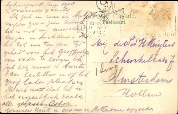 Zustand, siehe Scan, gelaufen, 1913 - ca 14 cm X 9 cm