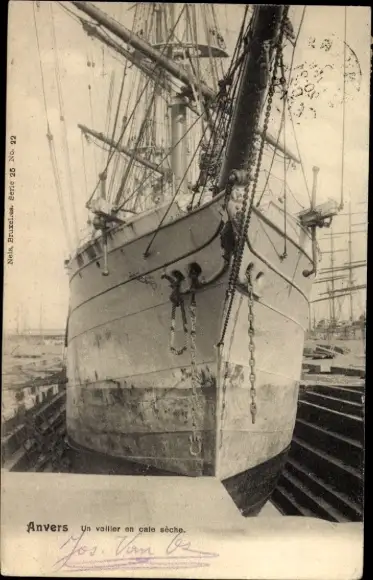 Ak Antwerpen Anvers Flandern, Un voilier en cale sèche, Segelschiff im Trockendock