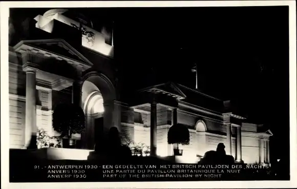 Ak Antwerpen Flandern, Exposition 1930, Partie du Pavillon Britannique la nuit
