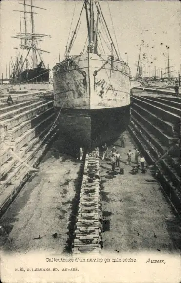 Ak Anvers Antwerpen Flandern, Calfeutrage d'un navire en cale seche