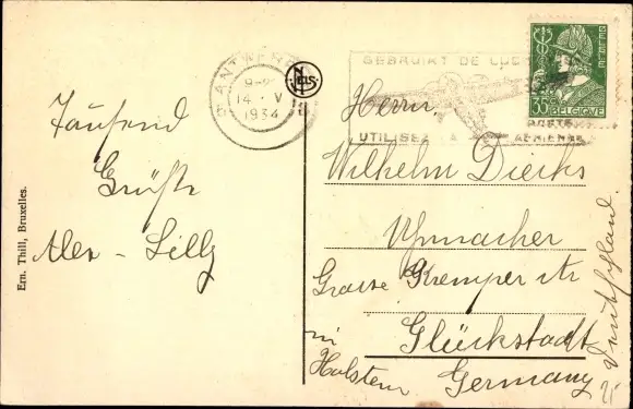 Zustand, siehe Scan, gelaufen, 1934 - ca 14 cm X 9 cm
