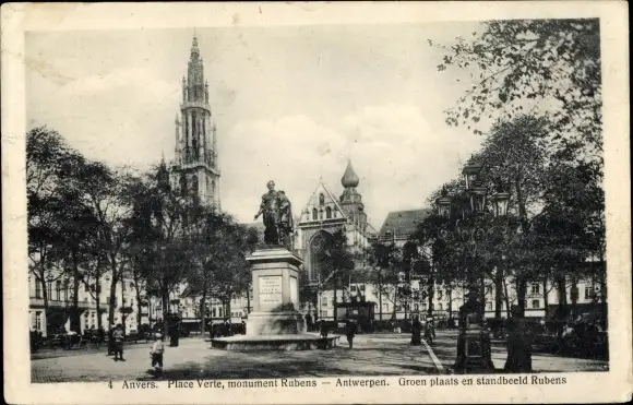 Ak Anvers Antwerpen Flandern, Place Verte, Monument Rubens