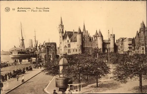Ak Anvers Antwerpen Flandern, Place du Steen