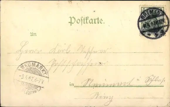Zustand, siehe Scan, gelaufen, 1907 - ca 14 cm X 9 cm