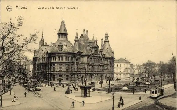 Ak Anvers Antwerpen Flandern, Square de la Banque Nationale, Vorplatz mit Gartenanlage