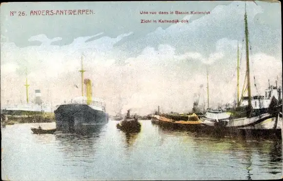 Ak Anvers Antwerpen Flandern, Une vue dans le Bassin Kattendijk