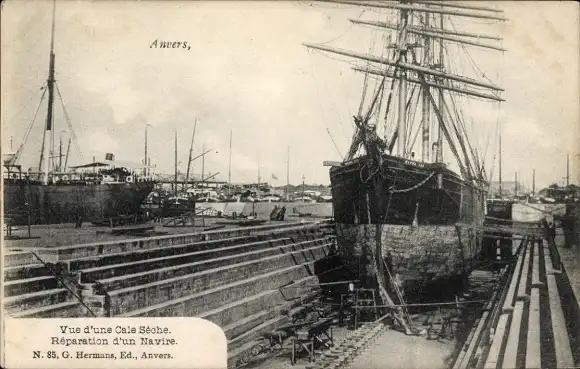 Ak Anvers Antwerpen Flandern, Vue d'une Cale Seche, Reparation d'un Navire