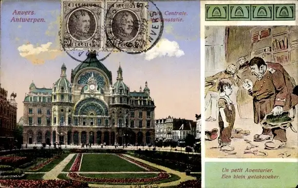 Ak Anvers Antwerpen Flandern, Zentralbahnhof, un petit Aventurier
