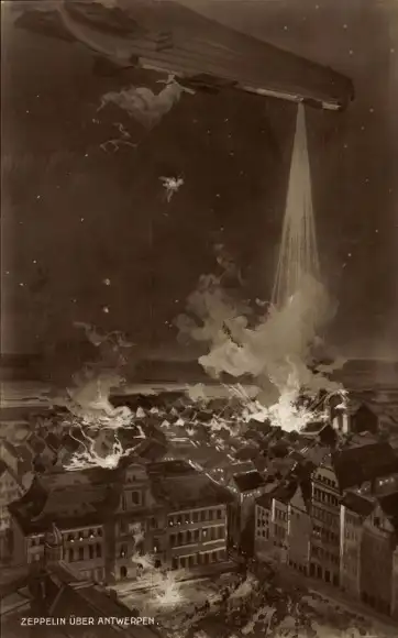 Ansichtskarte, Postkarte, Antwerpen, Luftschiff, Zeppelin, Zeppeline, Luftschiffe