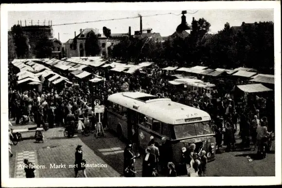 Ak Apeldoorn Gelderland, Markt met Busstation