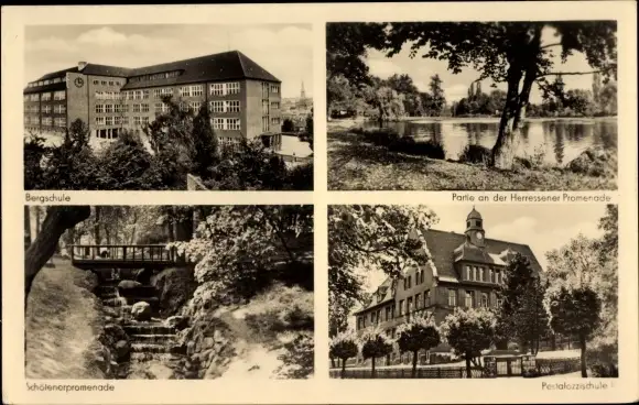 Ak Apolda in Thüringen, Bergschule, Pestalozzischule, Schölenerpromenade, Uferpartie