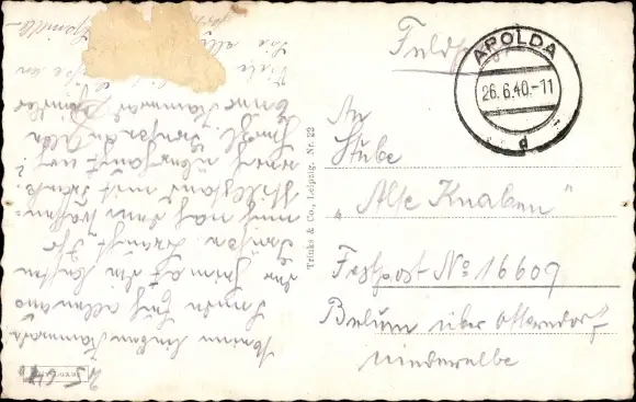Zustand, siehe Scan, gelaufen, 1940 - ca 14 cm X 9 cm