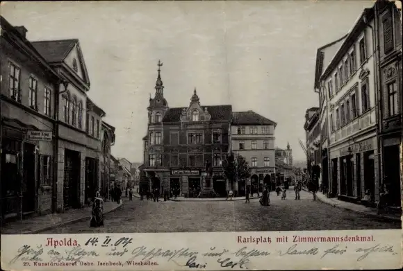 Ak Apolda in Thüringen, Karlsplatz mit Zimmermannsdenkmal