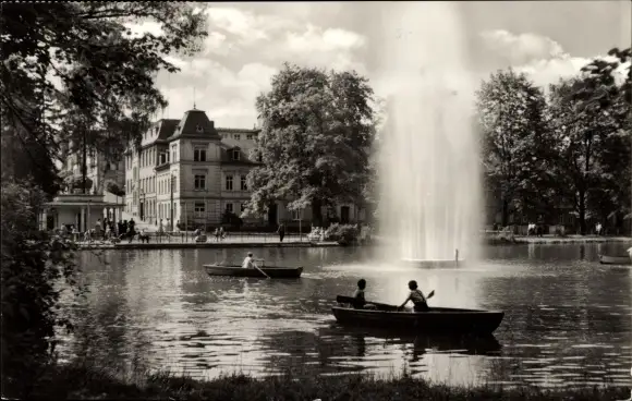 Ak Apolda in Thüringen, Lohteich, Fontäne, Ruderboote