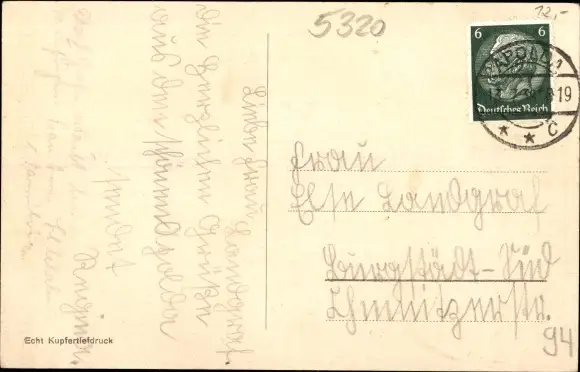 Zustand, siehe Scan, gelaufen, 1938 - ca 14 cm X 9 cm