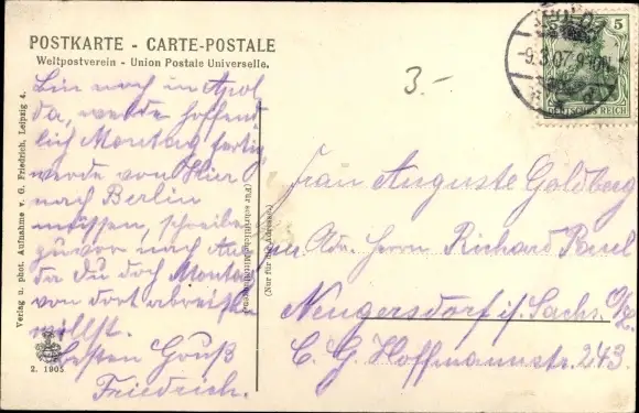 gelaufen 1907, Eckknick rechts oben, sonst guter Zustand