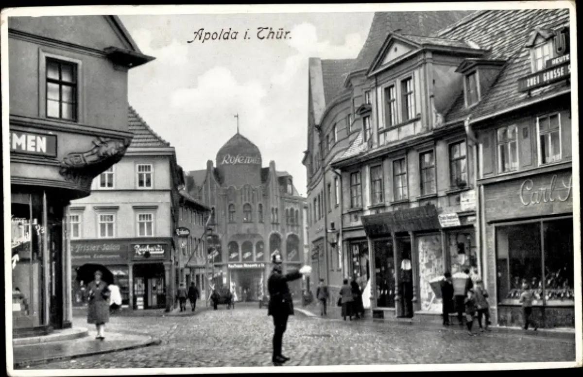 Ak Apolda in Thüringen, Straßenpartie, Polizist, Geschäfte