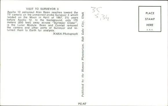 Ak Apollo 12, visit to Surveyor 3, Astronaut Alan Bean auf dem Mond