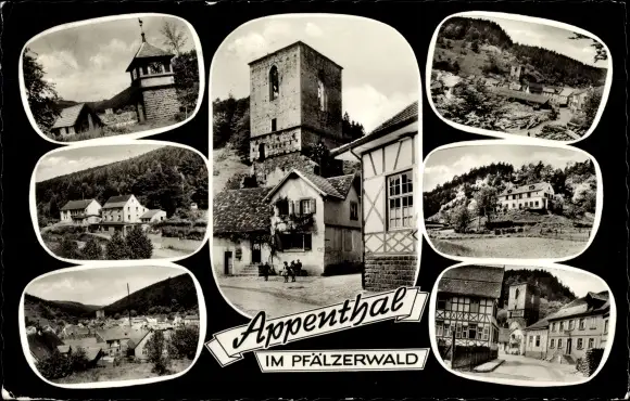 Ak Appenthal Elmstein in der Pfalz, Fachwerkhaus, Panorama, Turm, Straßenansicht