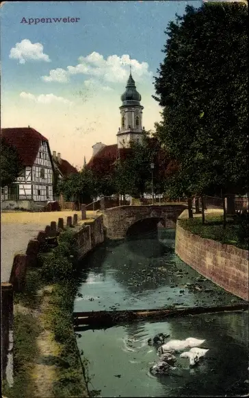 Ak Appenweier in Baden Schwarzwald, Flusspartie, Enten