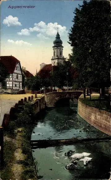 Ak Appenweier in Baden Schwarzwald, Flusspartie, Enten