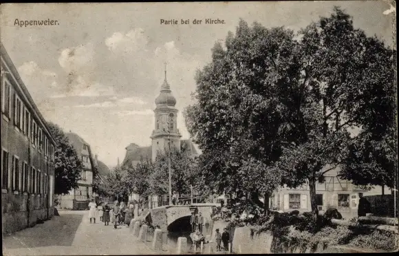 Ak Appenweier in Baden Schwarzwald, Partie an der Kirche, Kinder