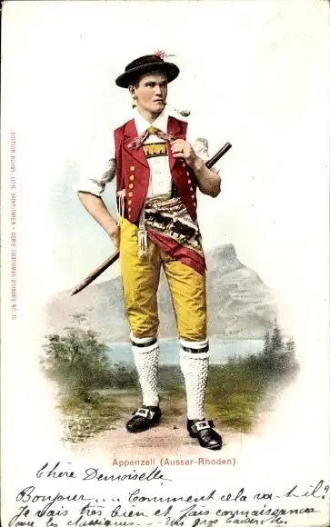 Ak Appenzell Kanton Außerrhoden, junger Mann in Tracht mit Pfeife