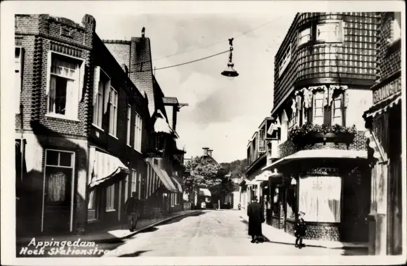 Ak Appingedam Groningen Niederlande, Hoek Stationstraat, Geschäfte