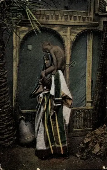 Ak Araberin in Volkstracht mit Kind, Maghreb