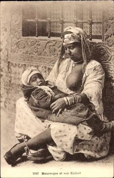 Ak Araberin mit Kind, Entblößte Brust, Maghreb
