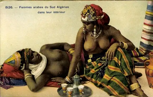 Ak Arabische Frauen aus Südalgerien in ihrem Inneren