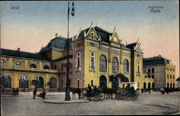 Ak Arad Rumänien, Partie am Bahnhof