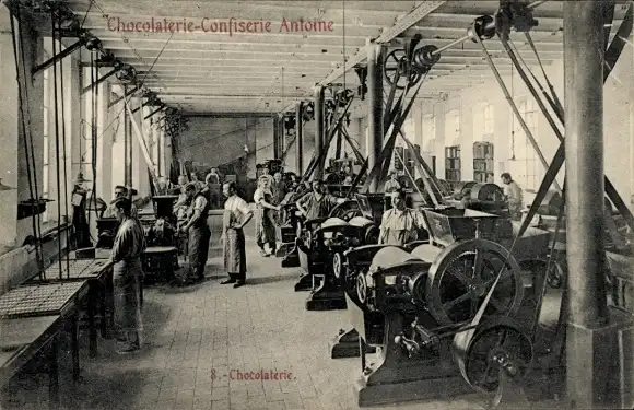 Ak Arbeiter in der Fabrik, Fabrikarbeit, Chocolaterie-Confiserie Antoine