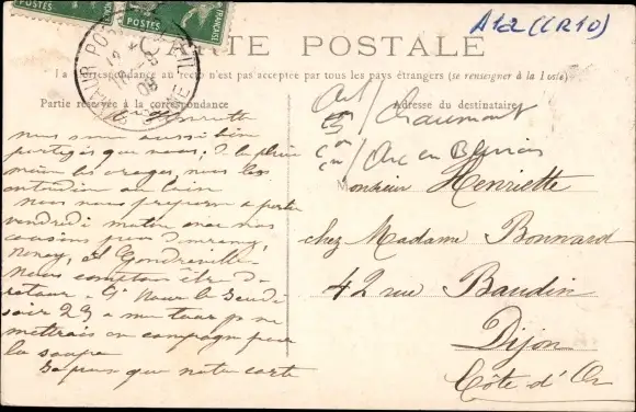 Zustand, siehe Scan, gelaufen, 1908 - ca 14 cm X 9 cm