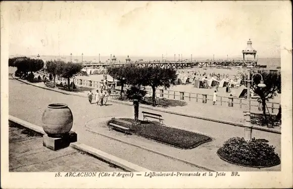 Ak Arcachon Gironde, Boulevard-Promenade, Jetée