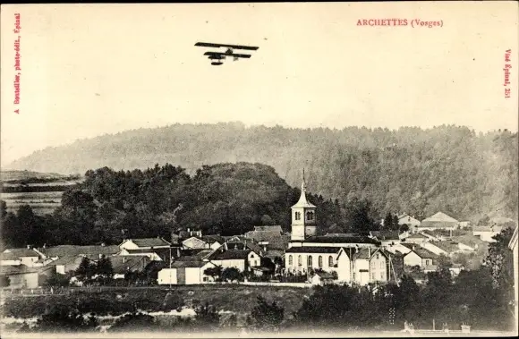 Ak Archettes Vosges, Vue générale, aeroplane