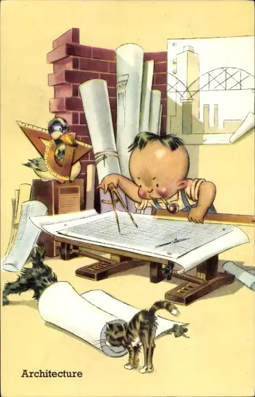 Ak Architekt mit Zirkel, technischer Zeichner