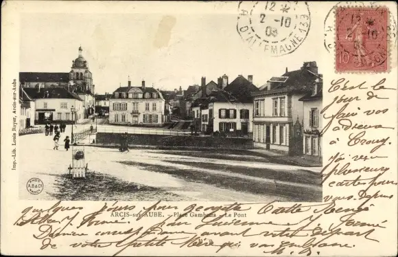 Ak Arcis sur Aube, Place Gambetta, Le Pont