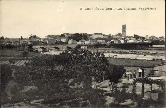 Ak Argelès sur Mer Pyrénées Orientales, Gesamtansicht